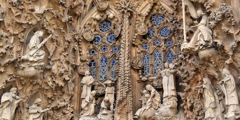 The Sagrada Familia has three monumental façades, each connected to the life of Jesus Christ: The Nativity Facade represents the birth of Christ and was the first part of the church that was built by Gaudi. The Passion Facade represents the Passion, Death, and Resurrection of Christ. The Glory Facade represents Christ’s eternal glory and is the only one yet to be completed. It features scenes of Christ's rise to heaven and eternal bliss. Although unfinished, the glory facade is already taller than any of the other church towers. Read more